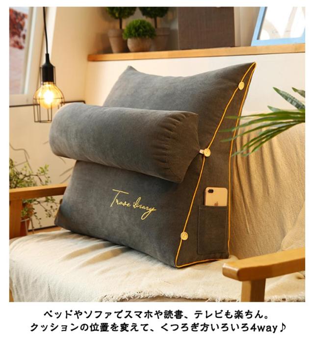 | 【背もたれクッション】【4way】【10color】【大きい】 ■4wayの背もたれクッション 腰枕、脚枕、お昼寝まくら、抱き枕と使い方いろいろ!カバーが洗えて清潔♪ ベッドやソファでスマホや読書、テレビも楽ちん。クッションの位置を変えて、くつろぎ方いろいろ4way♪便利なサイドポケット付き。 ■取り外し可能な枕付き 枕付きが嬉しいソファークッション! 首枕・腰枕と3段階の調節ができ、取り外せば単独で足枕としても使えて便利です。 寝ている間にむくみも解消♪ ■妊婦さん・子育てママにおすすめ マタニティ期や授乳するときも腰当ていらずで楽な姿勢がとりやすい長クッションです。 ■うつ伏せ寝の方にも 俯せの姿勢も楽ちんなうつぶせ寝クッションは、サポートクッションのようにアームレストがないから狭い場所にもコンパクトに収まります。 ■テレビまくらとして 柔らかいもたれ心地の三角クッションは、寝たまま読書やスマホ、テレビ枕としてもちょうどよい傾斜です。 ■オールシーズンOK! ごろ寝クッションのカバーは通気性良い混紡生地だから、春夏秋冬、季節を気にせず使えます。 | |
