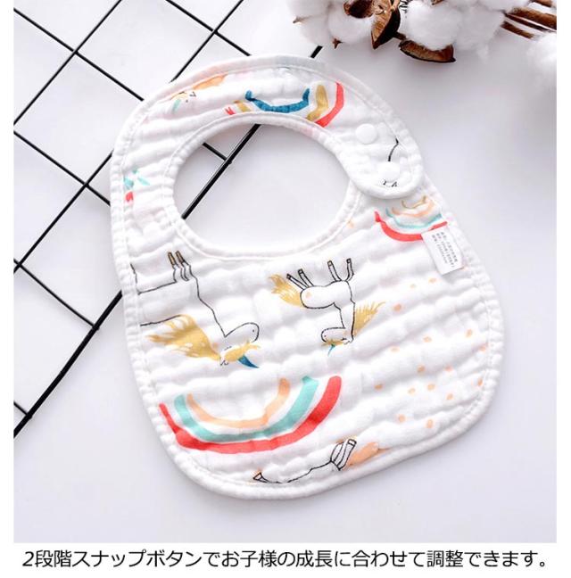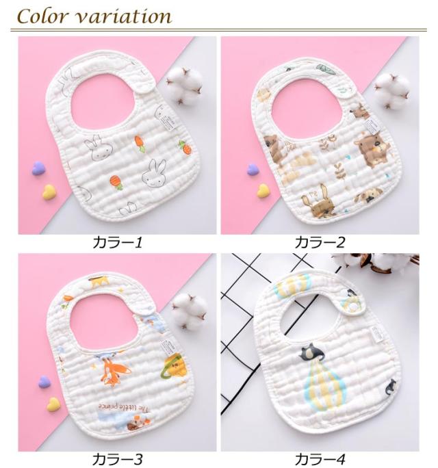 | 安全な素材を使用綿100%の天然素材で作られ、赤ちゃんの肌に優しいよだれかけ。 綿100%の8重ガーゼで柔らかい肌ざわり! コットン100% だから通気性、吸湿性、速乾性が高いのが最大の利点で蒸れ知らずです! お子様の成長に合わせて2段階にサイズ調整ができるスナップボタン付きです。 子供っぽいプリント柄も可愛く、U型のデザインも使いやすい。 洗い替えに便利な5枚セット。保育園にもつけて行けますので、予備の替えとしても重宝します。 | |