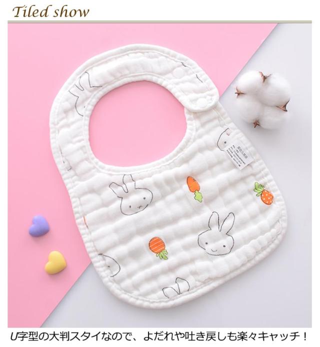 送料無料 5枚セット ベビースタイ 8重ガーゼ U型 赤ちゃん よだれかけ 食事エプロン スナップボタン 子供 ベビー コットン 前かけ 男の子 女の子 ガーゼスタイ ビブ ヨダレ エプロン お食事 お手拭き かわいい ベビー オシャレ お出かけ 通気性 吸収性 柔らかい 出産祝い