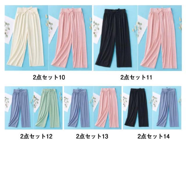 | 夏に涼し気な子供向けワイドパンツ2点セットです。 柔らかな素材にゆったりとしたシルエットで春夏に最適な履き心地。 ウエストがゴムなのでお腹を締め付けず楽ちんです。 無地シンプルデザインでコーディネーターしやすい。 普段着だけでなく部屋着としても。 | |