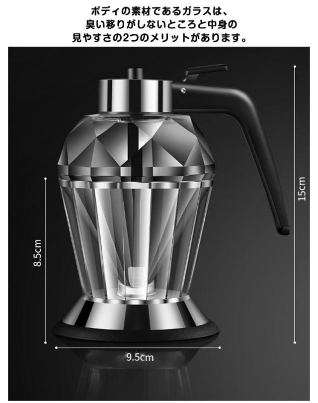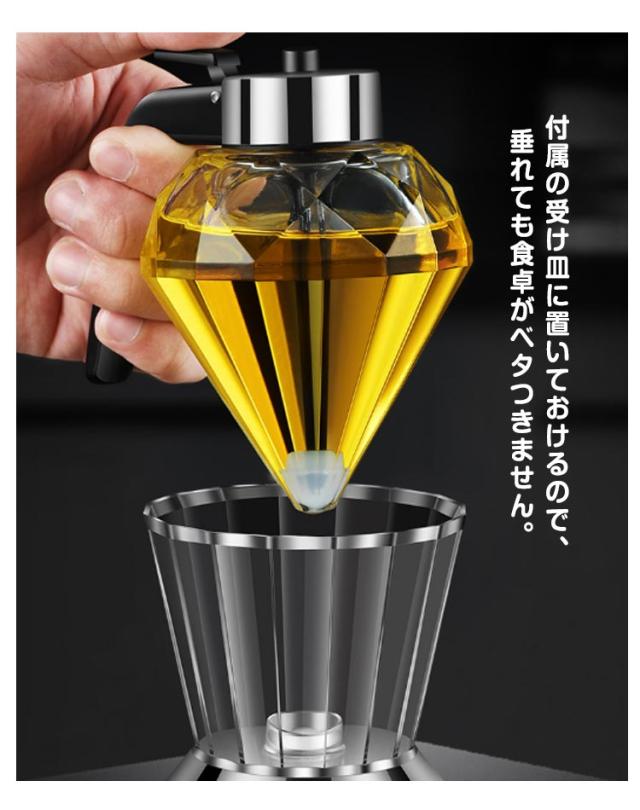 ハニーディスペンサー ガラス製 透明 ダイヤモンド型 蜂蜜入れ はちみつ入れ ハニーボトル ハチミツディスペンサー 受け皿付き オイルボトル オイルディスペンサー お酢入れ 液体 シンプル 容器 キッチン用品 おしゃれ