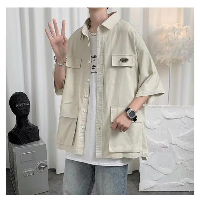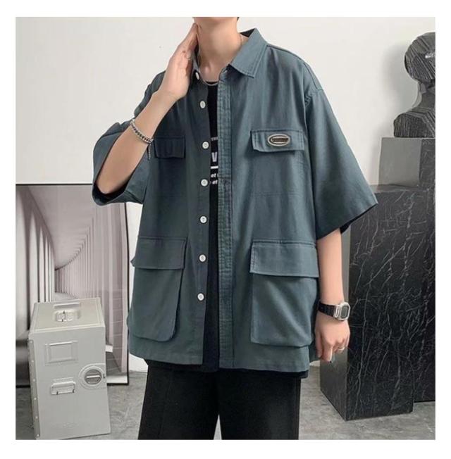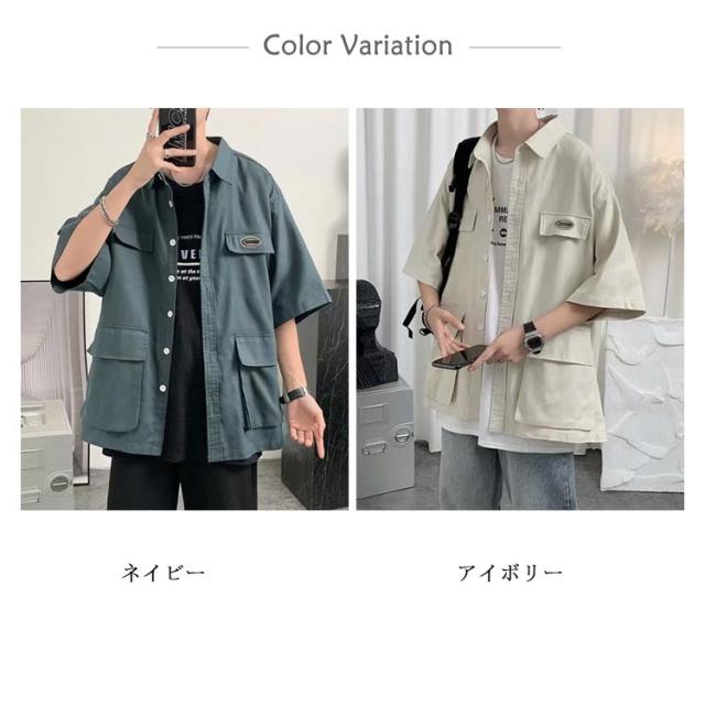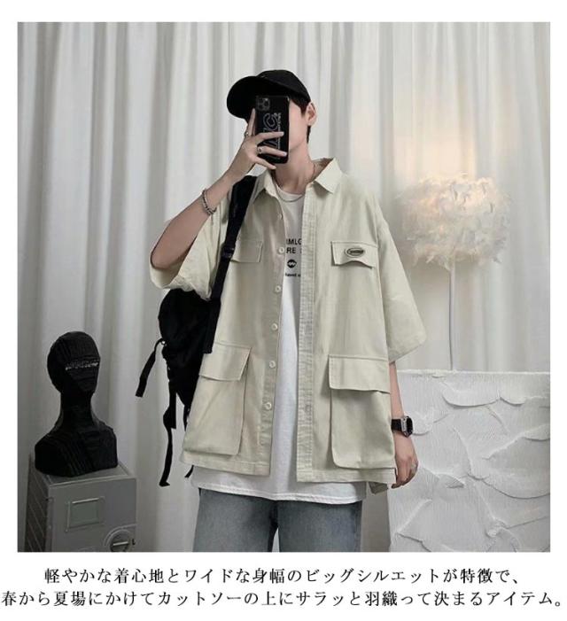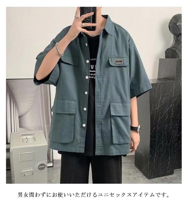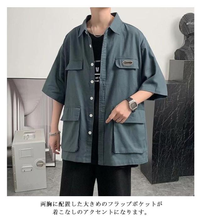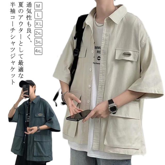 コーチジャケット 半袖 カジュアルシャツ ミリタリージャケット メンズ シャツジャケット サマージャケット ライトアウター オーバーサイズ ミリタリーシャツ 春 秋 夏 アウター 羽織り カジュアルシャツ ビッグシルエット 送料無料