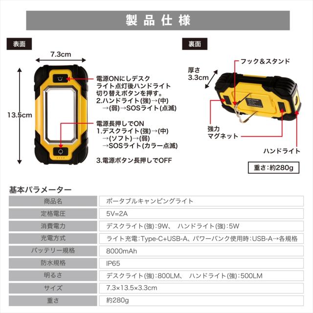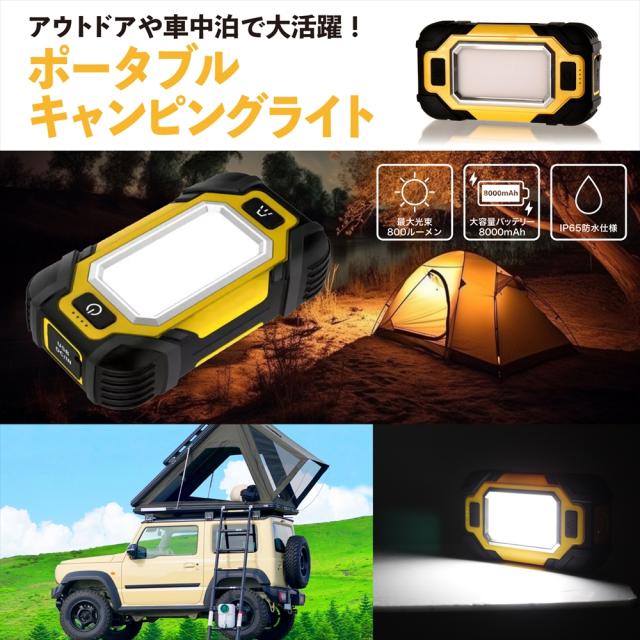 防災グッズ LEDライト キャンピングライト キャンプ ランタン 充電式 アウトドア IP65 8000mAh 懐中電灯 車中泊 スマホ充電 PSE取得 800ルーメン モバイルバッテリー 夜間作業 災害 停電時 防水 連続点灯 軽量 大容量 バッテリー マグネット カーライト 【宅配便のみ】