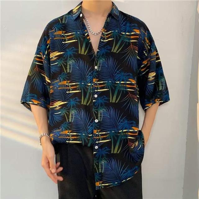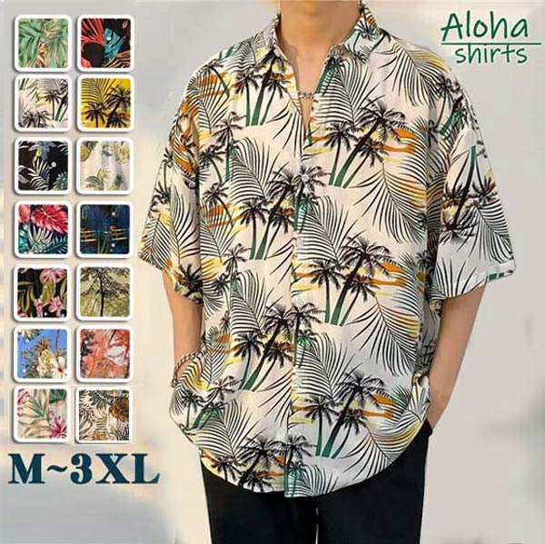メンズ アロハシャツ アロハ柄 上着 夏 シフォン シンプルデザイン ハワイアン 開襟シャツ 日焼け止め オープンカラー カジュアル ストリート 葉柄 M-3XL