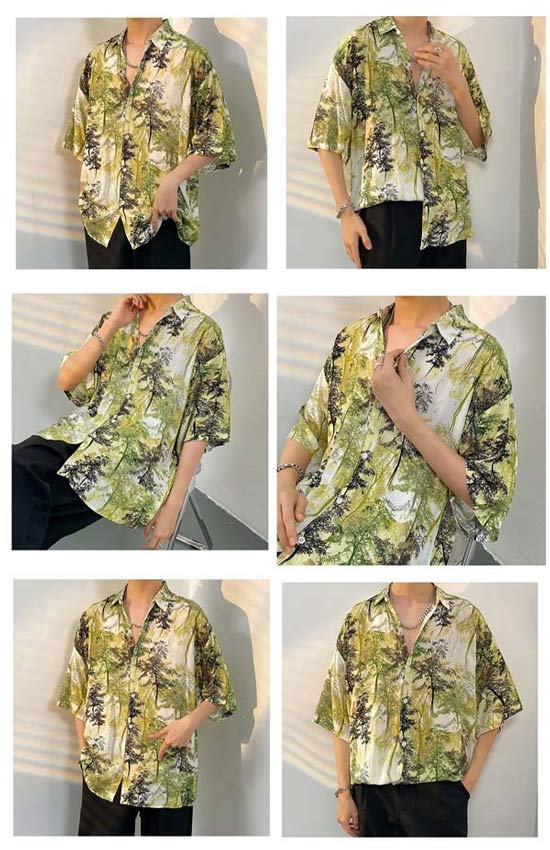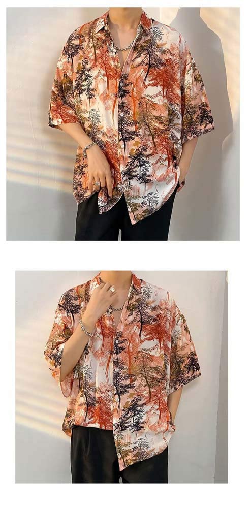 メンズ アロハシャツ アロハ柄 上着 夏 シフォン シンプルデザイン ハワイアン 開襟シャツ 日焼け止め オープンカラー カジュアル ストリート 葉柄 M-3XL eg273c0c0zr