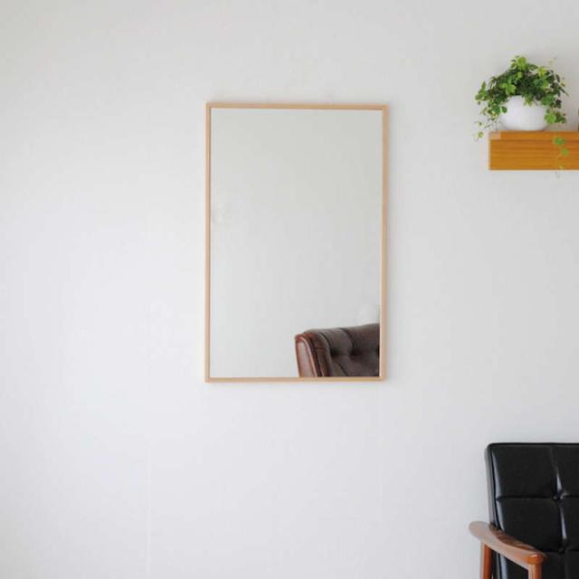 ウォールミラー 洗面鏡 玄関 壁掛け 高級 木製フレーム ツガ材 無垢材 細枠 フラット 幅47×高さ82cm 日本製