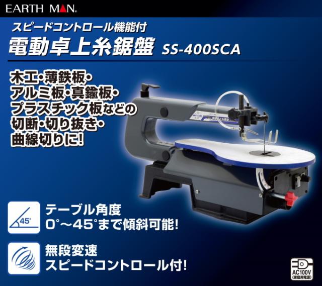 EARTH MAN スピードコントロール付卓上糸鋸盤 SS-400SCA 送料無料 家庭用 電動工具 糸鋸盤 糸鋸 切断 切り抜き 曲線切り 木工 薄鉄板 アルミ板 真鍮板 プラスチック板 アースマン