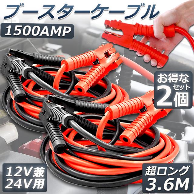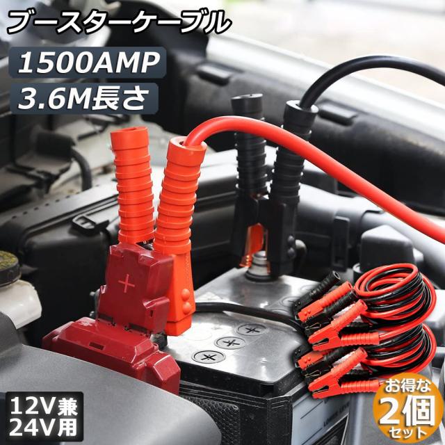 ブースターケーブル ジャンパーケーブル 3.6M 2台セット ロングサイズ 1500A 安全性 耐久性 耐熱防寒 幅広い車種 12V/24 バッテリー上がり 電気 緊急 軽自動車 普通車 ワニ口クリップ
