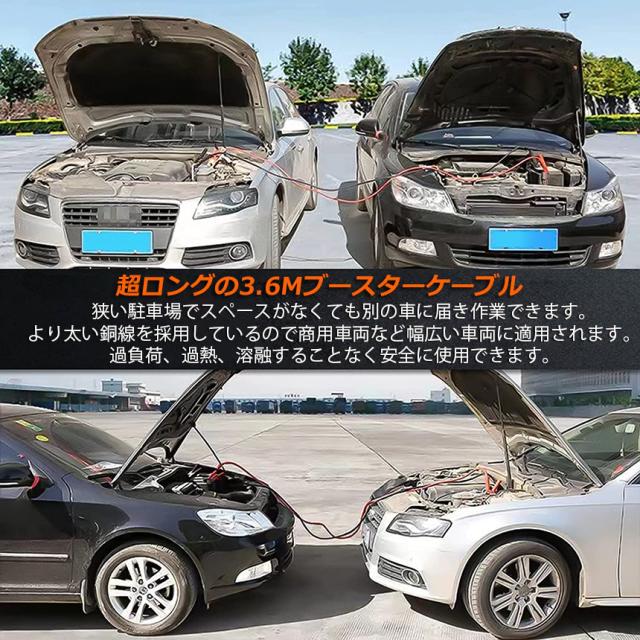 【幅広い対応性】3.6メートル長い1500AMPのケーブル、芯線直経が太く、12V/24V軽自動車商用車までに対応できます。