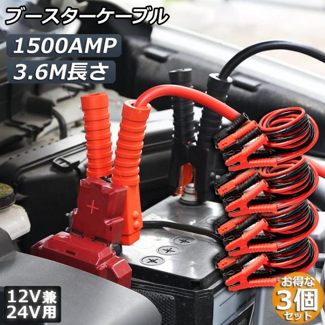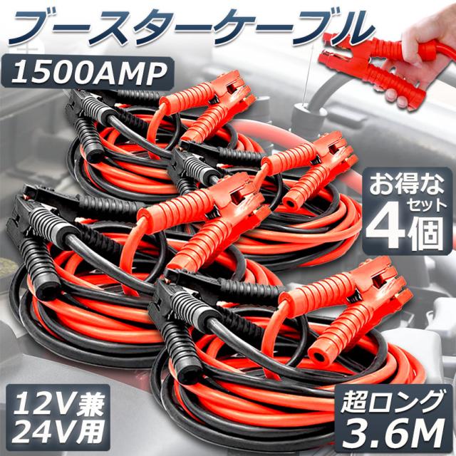 ブースターケーブル ジャンパーケーブル 3.6M 4台セット ロングサイズ 1500A 安全性 耐久性 耐熱防寒 幅広い車種 12V/24 バッテリー上がり 電気 緊急 軽自動車 普通車 ワニ口クリップ