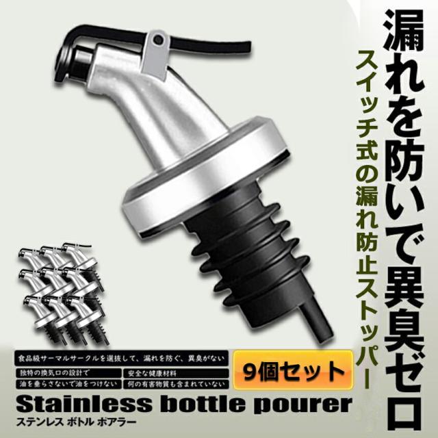 ステンレス ボトル ポアラー フタ付き 9個セット オリーブオイル ワイン カクテル ボトルの注ぎ口 オイル瓶 酒 調味 リキュール 瓶 器具 注ぎ口 定量 適量 送料無料