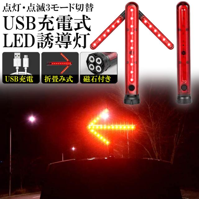 誘導棒 誘導灯 合図灯 矢印ライト USB充電式 点灯 点滅 3点灯モード 交通整理 駐車場 軽量 赤色灯 取り外し可能マグネット付き 警棒 安全棒 非常灯 非常信号灯 夜間作業 工事