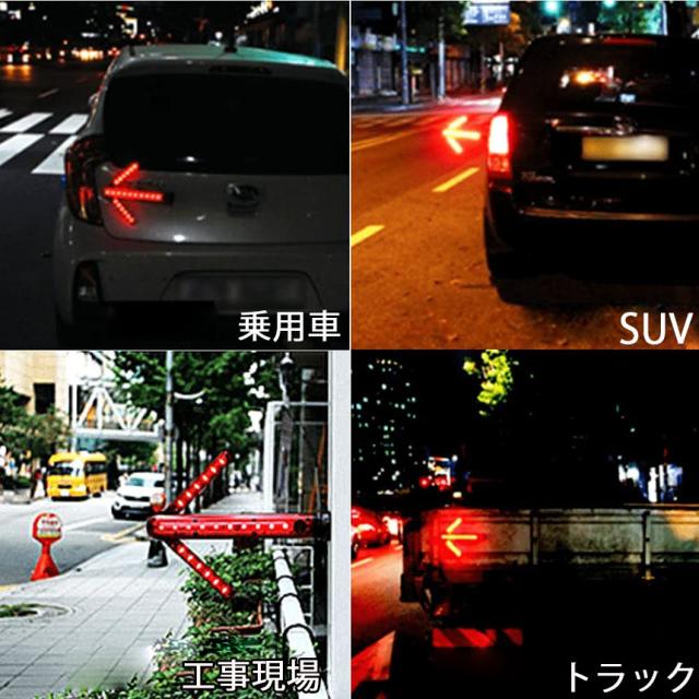【製品仕様】:300×38×38mm 重量:275g。 USB充電式。素材:PC+ABS。専用ケース&充電ケーブル付き【22LED/3点灯モード】: 1. 点灯。 2. 点滅。3. 矢印の先端に向かって流れる。 目的に合わせて点灯パターンを選べます。