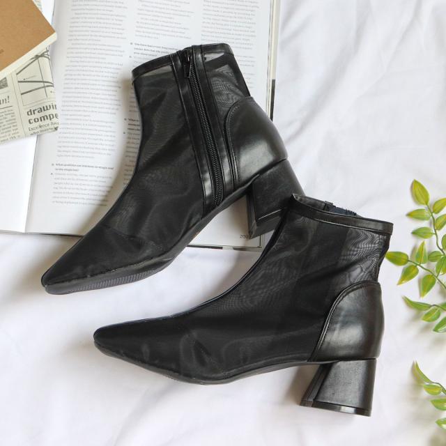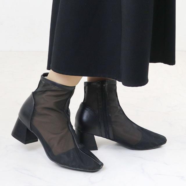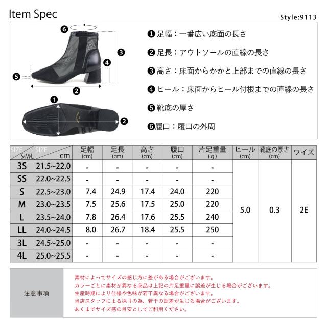 レディース シアーブーツサンダル チャンキーヒール 5.0cmヒール No.9113 22.5cm-24.5cm 黒 アイボリー LiBERTYDOLL リバティードール