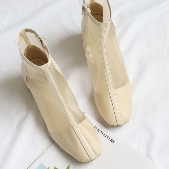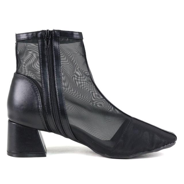 レディース シアーブーツサンダル チャンキーヒール 5.0cmヒール No.9113 22.5cm-24.5cm 黒 アイボリー LiBERTYDOLL リバティードール