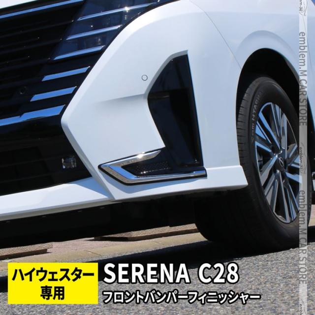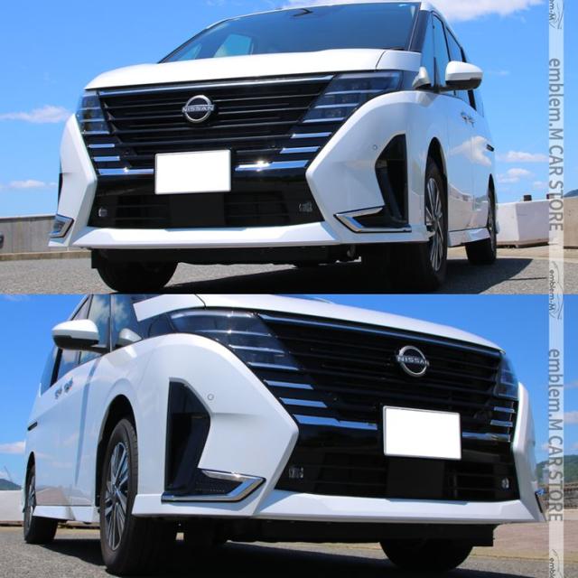 セレナ c28 パーツ セレナ フロントバンパーフィニッシャー 2P ピアノブラック×鏡面メッキ カスタムパーツ エアロパーツ 外装 新型 ハイウェイスター専用