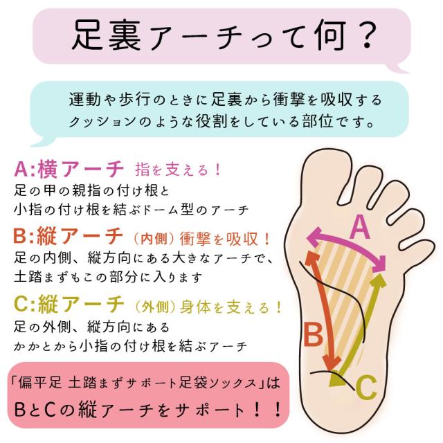 【偏平足(へんぺいそく)土踏まずサポート足袋ソックス】では