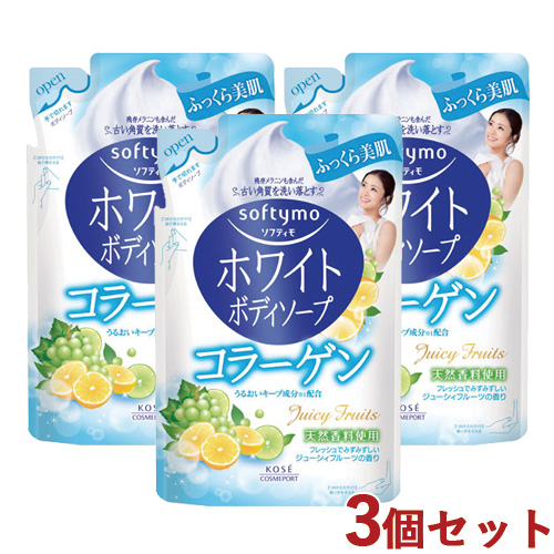 ソフティモ ホワイト ボディソープ コラーゲン フレッシュマリン 詰替用 420mL×3個セット つめかえ 詰め替え WHITE BODY SOAP softymo コーセーコスメポート(KOSE COSMEPORT)【送料込】