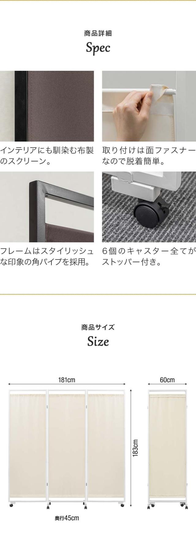| サイズ: (約)幅181cm×奥行45cm×高さ183cm ※1枚辺りの幅60cm |