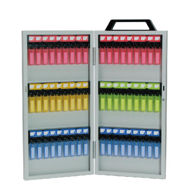 | 仕様 | ●種別/54個吊 ●タイプ/暗証番号ダイヤルキー ●寸法/277×599×64mm ●材質/本体:スチール・ABS、キーホルダー:PP・スチール ●質量/3330g ●付属品/取付ネジ:4本、鍵:2本、キーホルダー:(緑・黄)×各9個、(青・赤)×各18個 ・操作パーツ1個 |