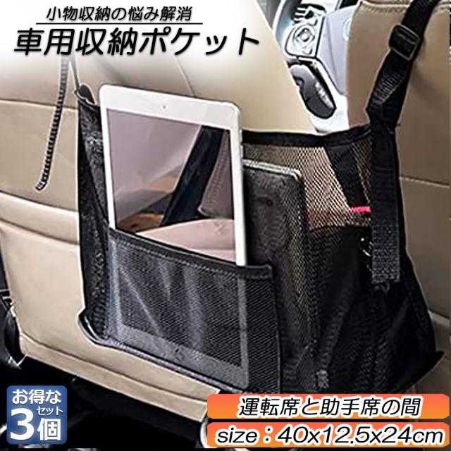 車用収納ポケット 収納ポケット ネットポケット 3個セット 車内収納バッグ シートバックメッシュ 多機能 収納バッグ カバンホルダー 撥水加工 傷に強い 省スペース 大容量 取り付けが簡単 車載 車内 小物入れ 車用 袋 車 収納