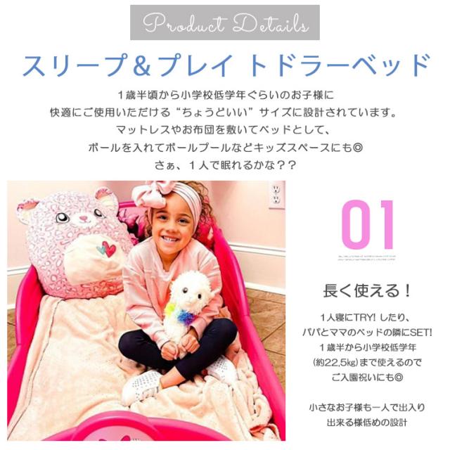 『ディズニー のプレイヤード兼 幼児用ベッド』 今にも飛び出しそうなパウパトの仲間達がデザインされた自慢のベッド! ボールを入れてボールプールなど、プレイスペースとしてもお使い頂けます。 サイドフレームに高さがあり、転倒防止 標準的な幼児用マットレスが使用可能(マットレスサイズ約134cm×70cm×17cm) ※マットレスやシーツなどは別途ご用意ください |