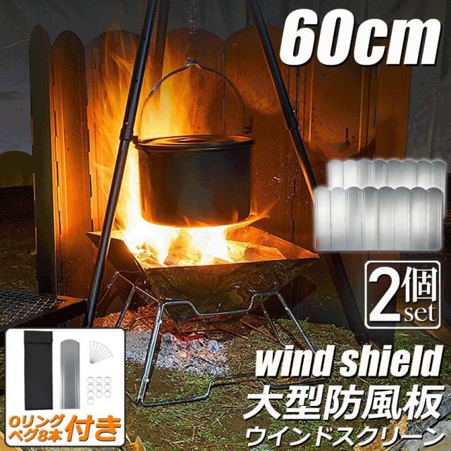 ウインドスクリーン 60cm 焚き火 リフレクター 2枚セット 反射板 風除板 防風板 亜鉛メッキ鋼板 大型 風防 キャンプ 風よけ 収納ケース付き バーベキュー キャンプ用品