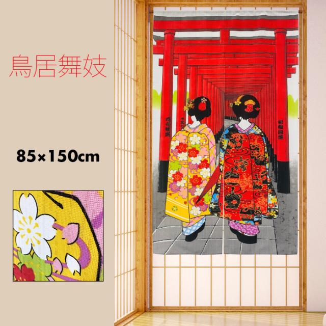 のれん 暖簾 おしゃれ カーテン 間仕切り 仕切りカーテン 目隠し 和風 和柄 和モダン 和風モダン 和風暖簾 日本 舞妓 鳥居 京都 伏見稲荷大社 千本鳥居 着物 鳥居と舞妓85×150cm