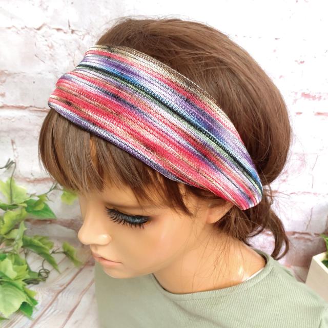 ボーダー柄 ヘアバンド gold 編み糸 グラデーションカラー エスニック 伸びる ヘアアレンジ ha-486 ヘアアクセ 春夏 レディース ターバン 華やか ズレない 落ちない 大人っぽい ゴム 伸縮 おしゃれ サマー ニット 民族 ギフト プレゼント