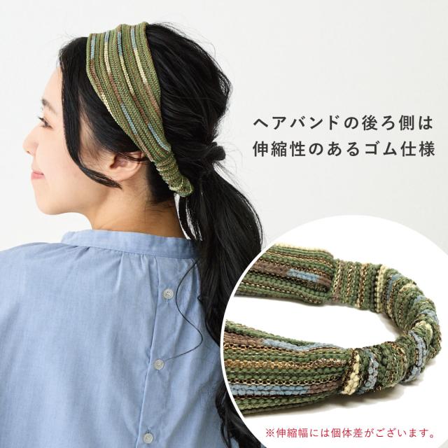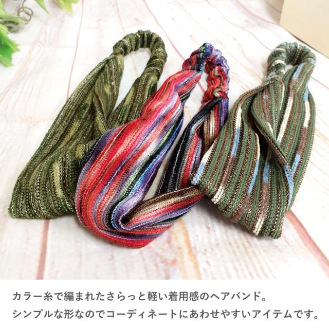 カラー糸で編まれたさらっと軽いつけ心地のヘアバンド。
