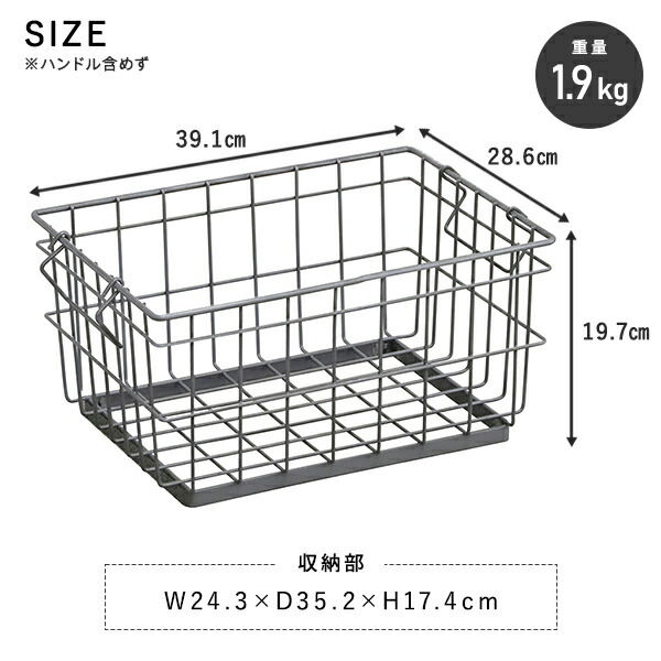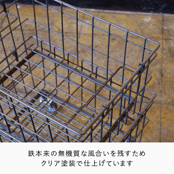 | 商品説明 | ●深さのあるバスケットタイプ ●パントリー収納や植物のディスプレイなど、個性的でカジュアルな魅せる収納に ●同サイズのバスケットを積み重ねて使用可能 ●鉄の風合いを生かしたニュアンスのある表情が魅力 ●収納部サイズ:幅24.3×奥行35.2×高さ17.4cm ●耐荷重:1台あたり10kg、積み重ね時5kg(最大段数 3段) ※鉄本来の風合いを残すため、クリア塗装で仕上げております |