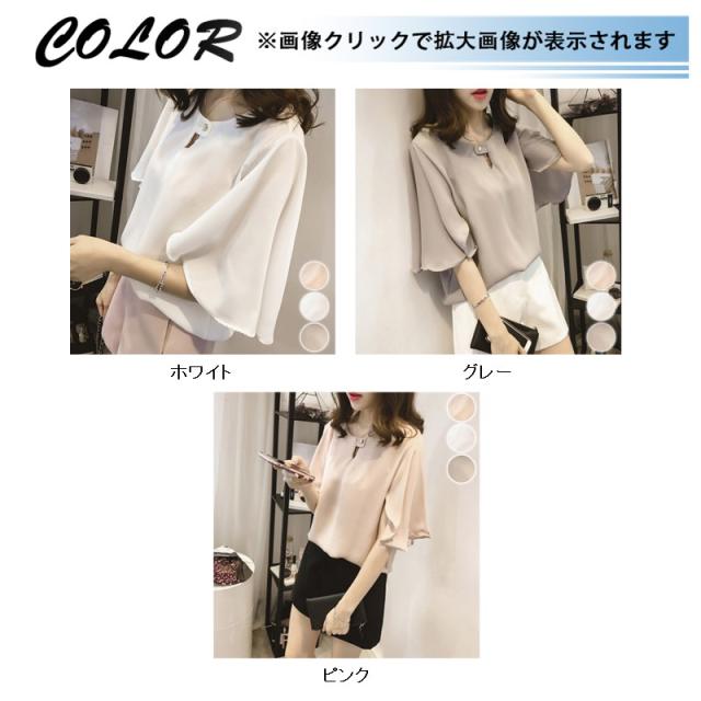 レース トップス シフォン ブラウス 半袖 大きいサイズ シースルー シャツ ブラウス 接触冷感 袖フレア 5分袖 可愛い ゆった
