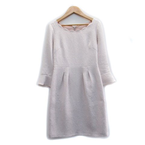 【中古】プロポーション ボディドレッシング ワンピース 七分袖 ひざ丈 スカラップネック 総柄 1 ピンク レディース