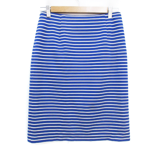 【中古】グローブ grove タイトスカート ひざ丈 ボーダー柄 スリット L 青 白 ブルー ホワイト /FF54 レディース