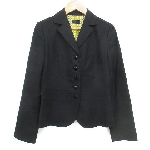 【中古】ポールスミス ブラック ジャケット ミドル丈 オープンカラー 総裏地 シングルボタン 40 黒 /FF24 レディース