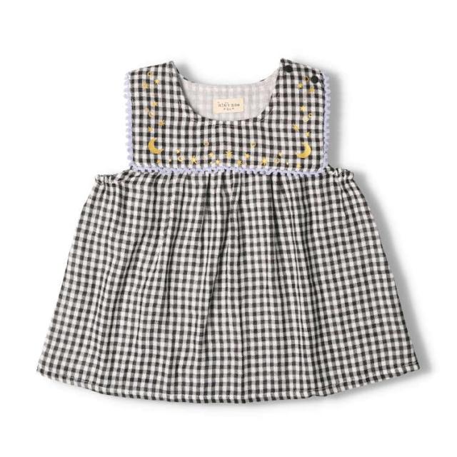 ガーゼを二重にしたWガーゼ素材の柔らか素材でベビーにもオススメなギンガムチェック柄のチュニック。衿の星や月の刺繍がアクセントになっています。インナーを変えて長く着られるアイテム。ブラック×ホワイト、ライトブルー×ベージュの2色展開。【アイテム】ロングスリーブ 長袖 プレゼント ギフト プルオーバー 赤ちゃん服 ベビー服 贈り物 トップス 無地 シンプル ガーリー カジュアル お洒落 オシャレ かわいい 可愛い 普段着 デイリーウェア お出かけ着 子ども こども 女児 女の子 ガールズ キッズ ベビーサイズ 幼稚園 保育園通園 2023年秋冬物新作 丸高衣料 黒色 白色 水色 青色 キッズズー コットン100% 綿100%