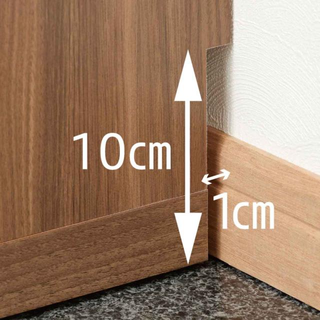 背面の下部に1cmの隙間があるので、壁につける際に巾木を避けてぴったりつけることができます。