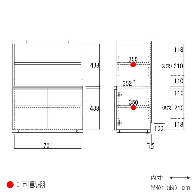 【可動棚2枚:3cmピッチで8段階】