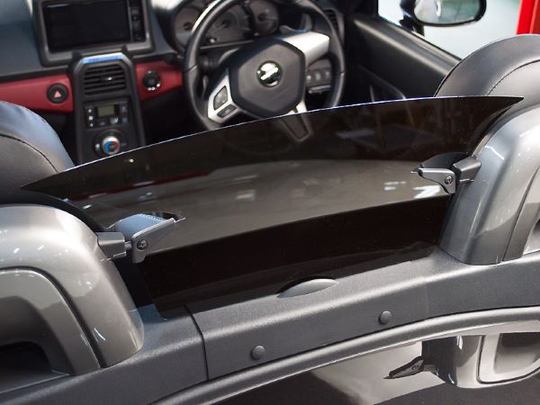 純正ロールバー形状に合わせたスモークリアディフレクター。