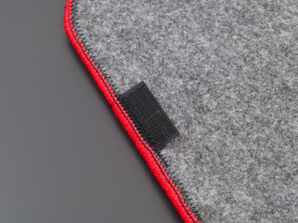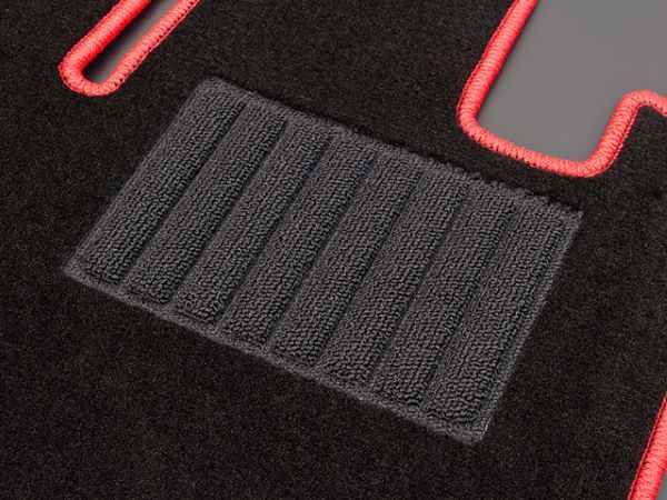 フロアマット裏面は従来のズレやすいラバースパイクを廃止し、ズレに強く吸音性の高い特殊フエルト生地を使用。さらにフック穴や運転席にはマジックテープも装備し、マットのズレを低減し安心してドライビングをお楽しみいただける仕様となっております。