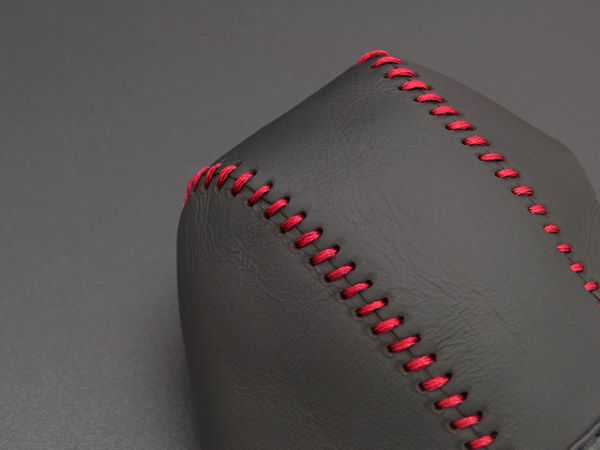 取付は、一体感を優先するため裏側を付属の縫い針と縫い糸で縫い上げていただきます。ちょっとしたDIY作業が必要ですが、画像付説明書を付属しておりますのでご安心ください。(シフトノブは車両から取り外さずに作業可能です。)