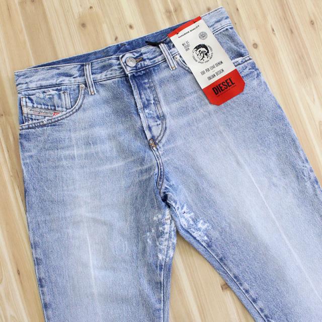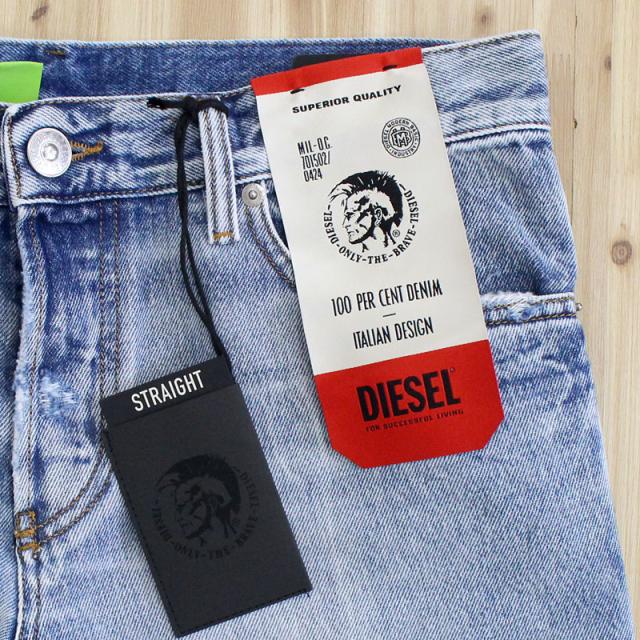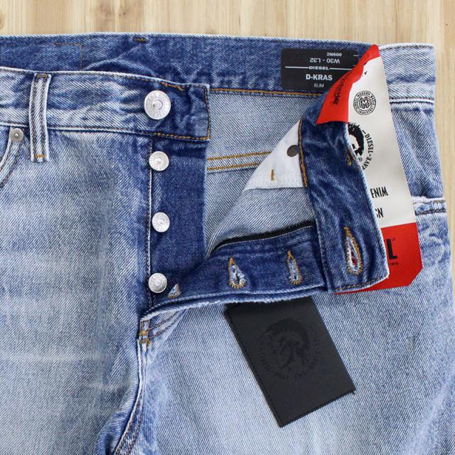 送料無料 DIESEL ディーゼル メンズ デニム ジーンズ ストレート スリム ボタンフライ ウォッシュ リペア ダメージ 刺繍 ブルー D-KRAS 009NC STRETCH ブランド 並行輸入