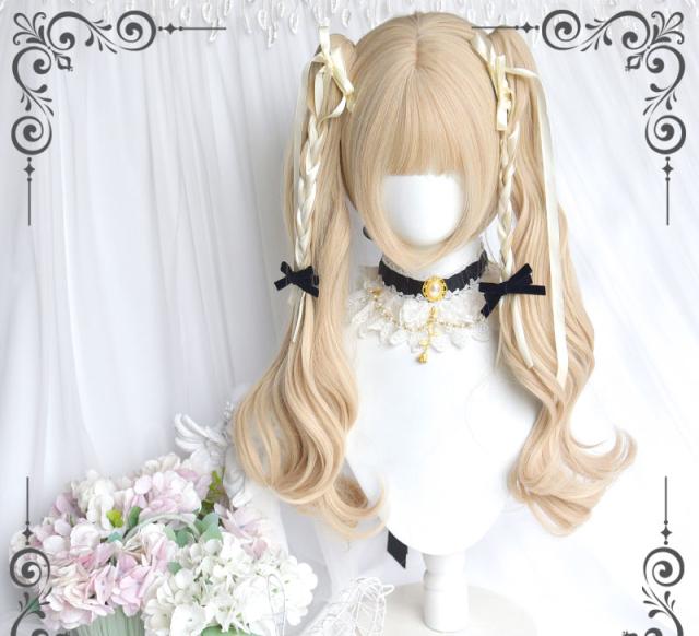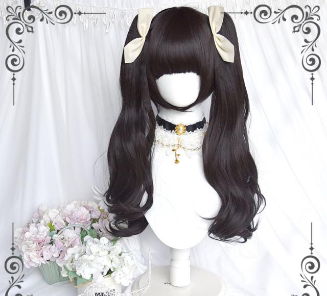 ロリータ ウィッグ ツインテール 原宿風 ゴスロリ コスプレ カツラ 耐熱 メッシュ ブラック ロング ネット付き