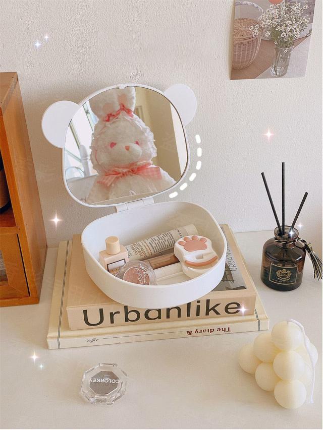 送料無料 メイクボックス ミラー 鏡付き コスメケース 卓上ミラー スタンドミラー 化粧鏡 コスメボックス メイクケース リップ収納 ネイル収納