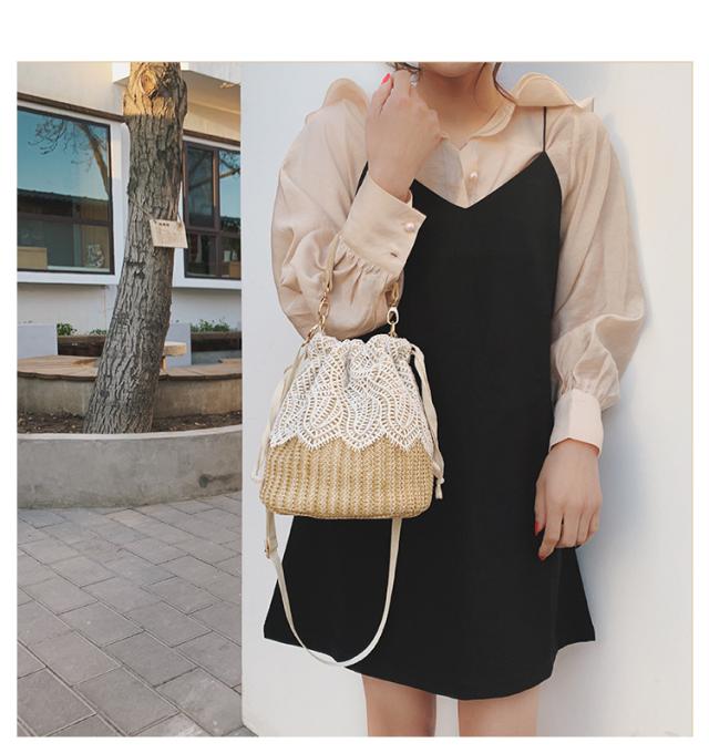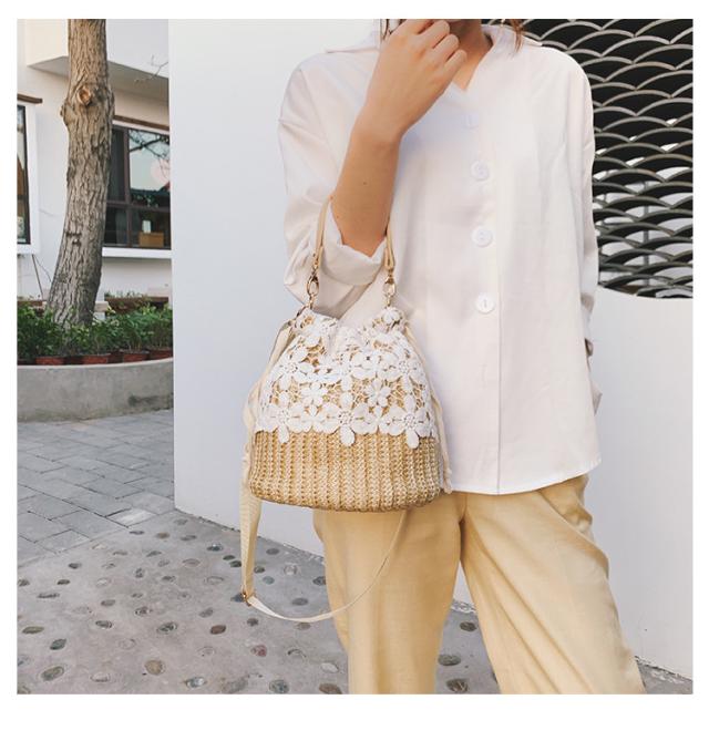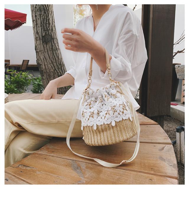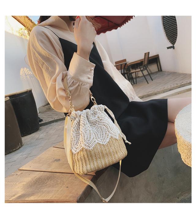 かごバッグ レディース ショルダーバッグ 巾着型 レース 手提げ 斜めがけ 祭り 手提げバッグ ストローバッグ ハンドバッグ ゆかた