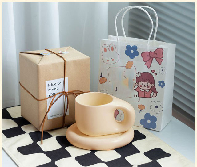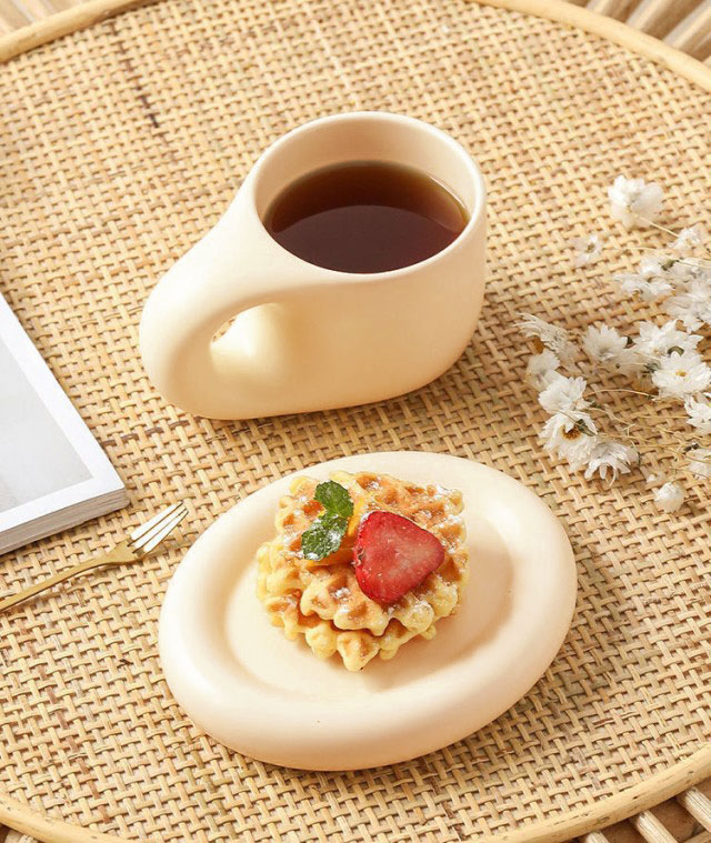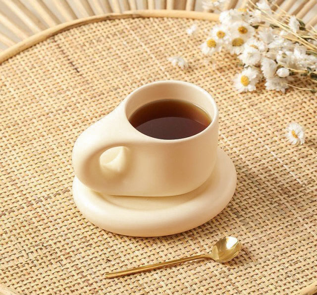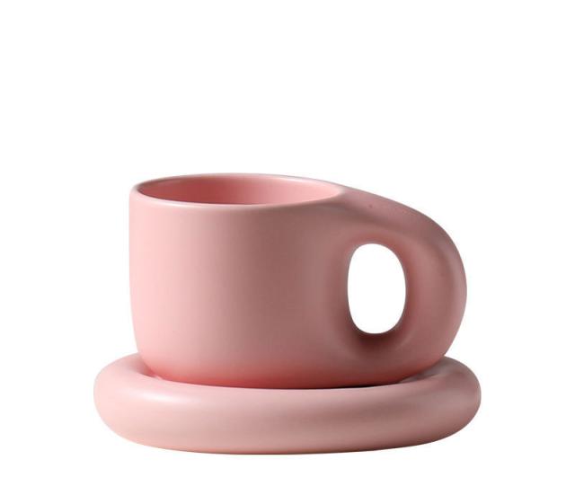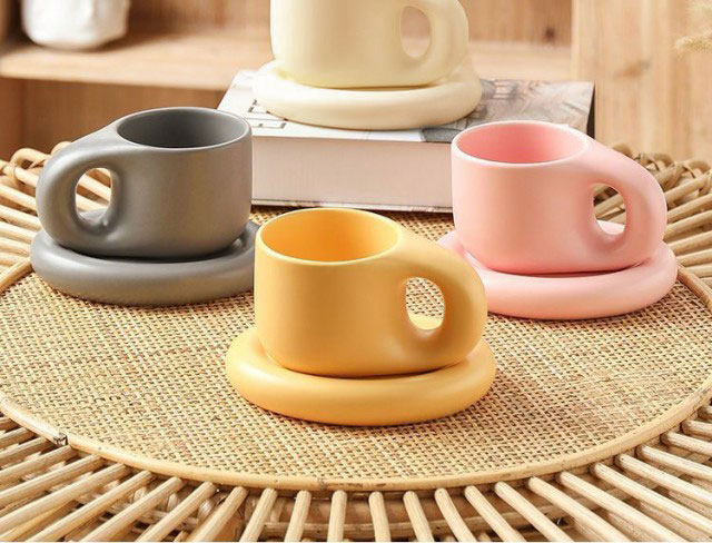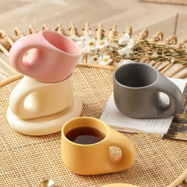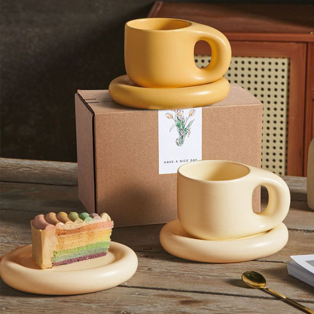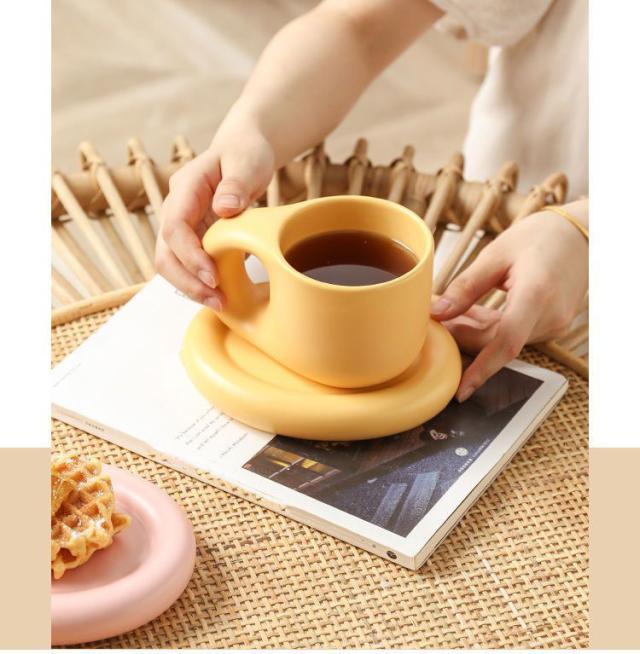 マグカップ×ソーサー コーヒーカップ ティーカップ 陶器 2点セット 400ml 珈琲 カップ 食器 マグ プレート コップ 皿 置物 韓国 北欧 ラウンドデザイン おうち時間 カフェ お洒落 可愛い