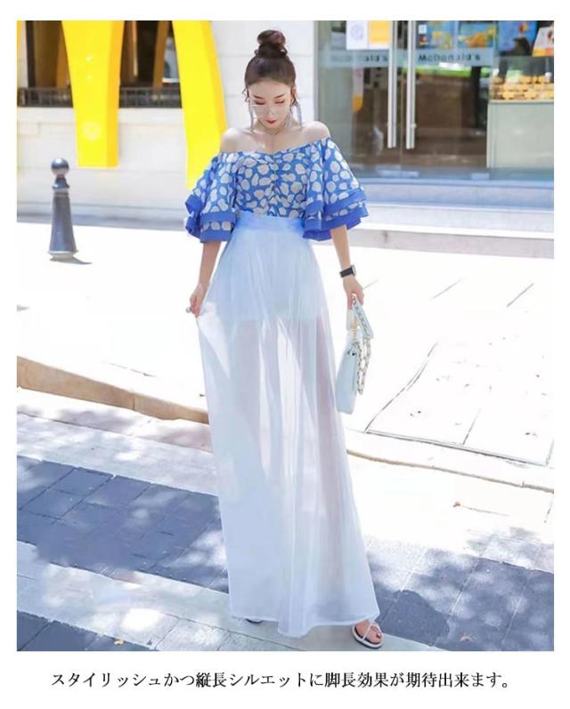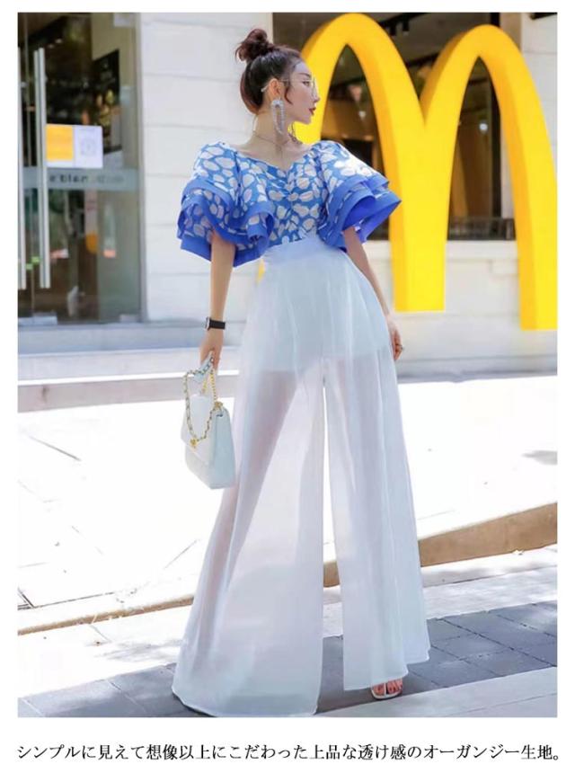 | 【ワイドパンツ】【透け感】【S〜XL】 透け感がオシャレなワイドパンツです。 裾に向かって広がっていくワイドパンツは脚をスリムに見せる効果があります。 スッキリとした印象で、腰位置を高く見せてくれるハイウエストは、欠かせないアイテム。 シンプルに見えて想像以上にこだわった上品な透け感のオーガンジー生地。 ウエストゴムで楽ちんな穿き心地♪ スタイリッシュかつ縦長シルエットに脚長効果が期待出来ます。 | |