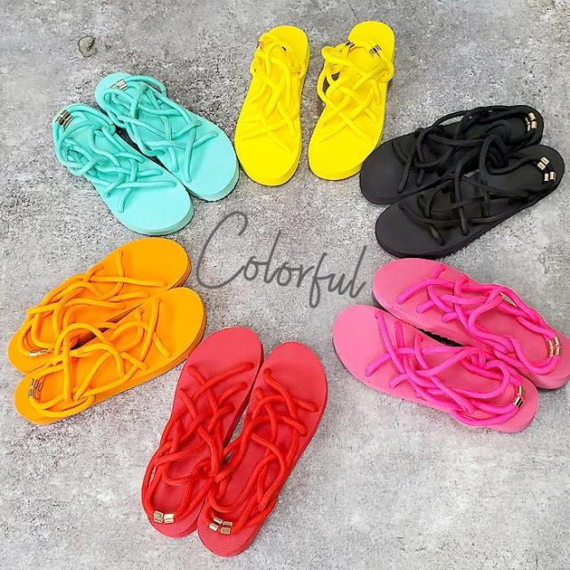 春新作 サンダル レディース スポーツ ストラップ 紐 コード レースアップ 軽量 夏[郵3]^bo-920^ ★