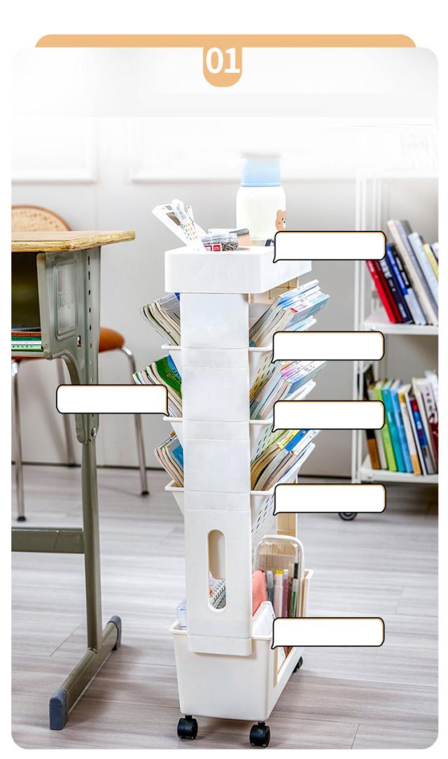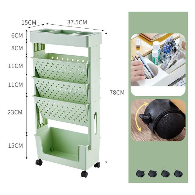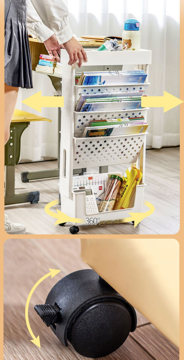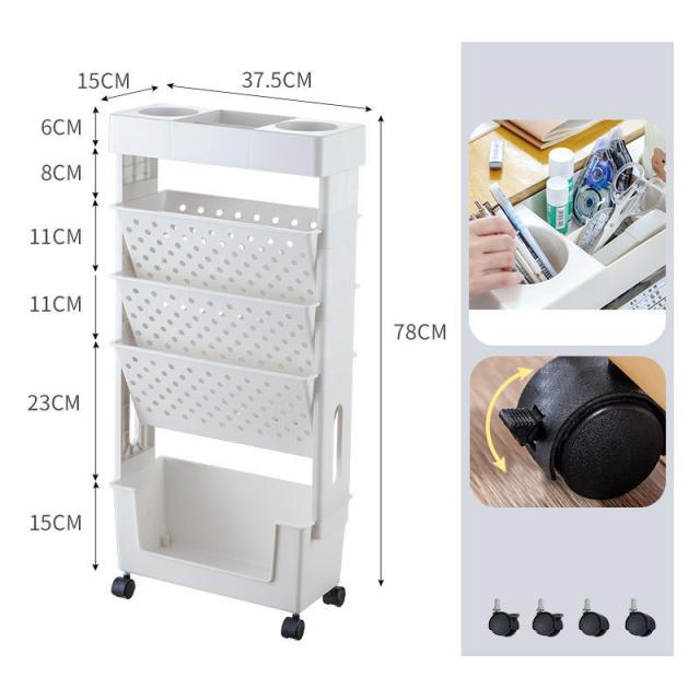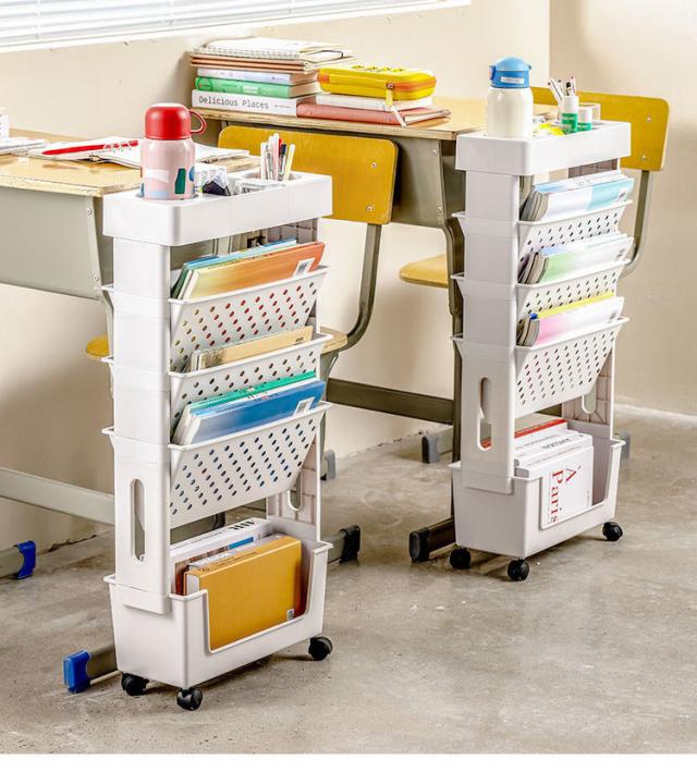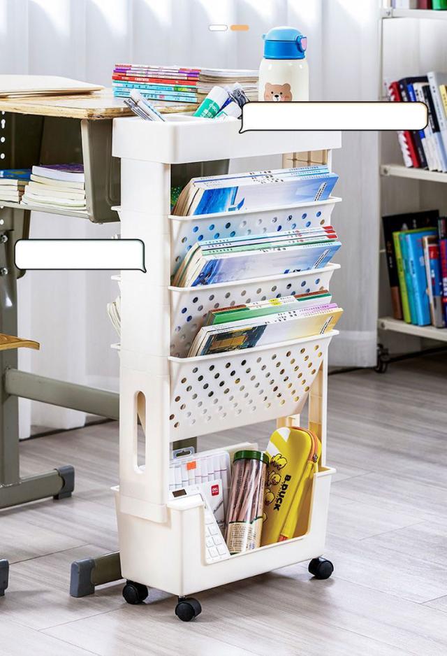 ブックスタンド キャスター付き 本立て キッチンワゴン ワゴン 本棚 書類収納 デスクサイド収納 5段 スリム 絵本棚 卓上収納 デスク整理 学校机用品 大容量 リビング収納 組み立て簡単