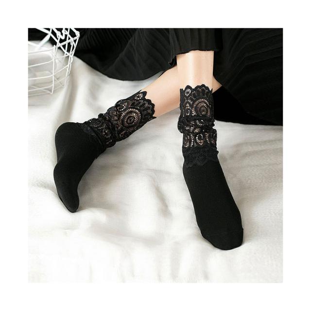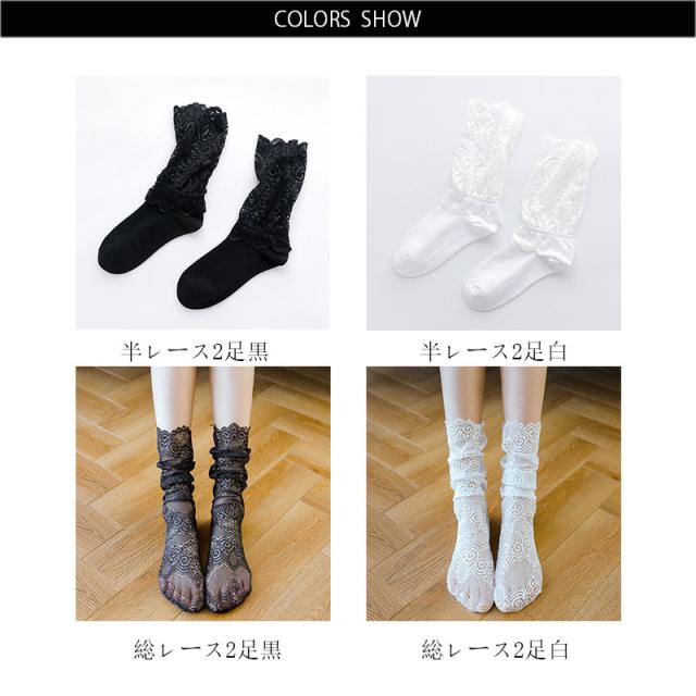 2足セット 靴下 ソックス フリーサイズ ハイソックス レースソックス レース靴下 レディース 春夏秋 フリルソックス レース 半レース 総レース ロングソックス レース スニーカーソックス くつした 送料無料